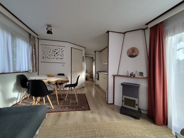 heerlijk chalet op gezellige camping De Wijde Blik in Garderen, aan de rand van het Speulder- en Sprielderbos, op loopafstand van het dorp. Voorzien van verwarming (gas- en elektrische kachel), eigen sanitair (toilet en douche) en volledig ingerichte keuken. Inclusief meubilair, gordijnen en vloerkleden. Drie kamers: woonkamer, slaapkamer en tweede slaapkamer (ook te gebruiken als opbergruimte). Terrastuin op het zuiden met buitenverlichting, inclusief meubilair (en parasol) en schuurtje met (tuin)gereedschap en fiets. Vraagprijs: € 40.000,-. Jaarlijks kampgeld (prijs 2025): € 2.560,- (incl. 9% btw).
